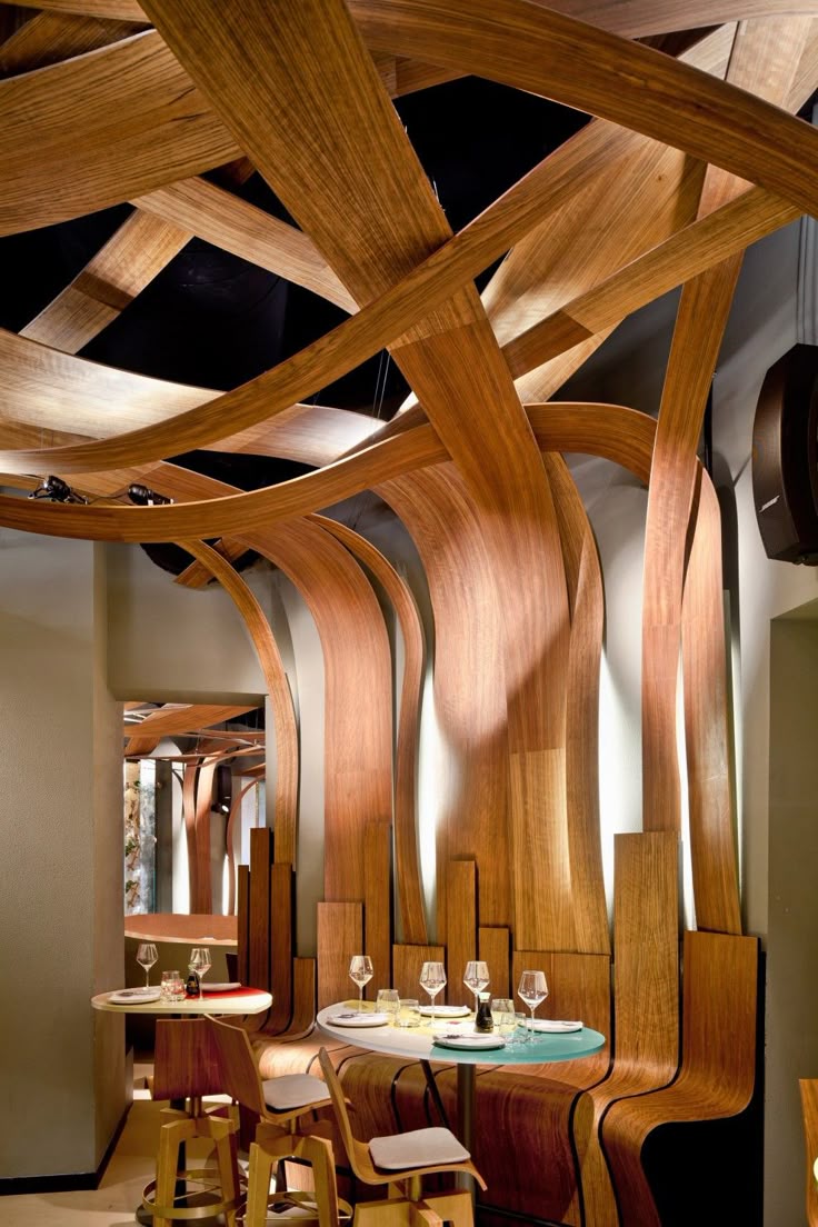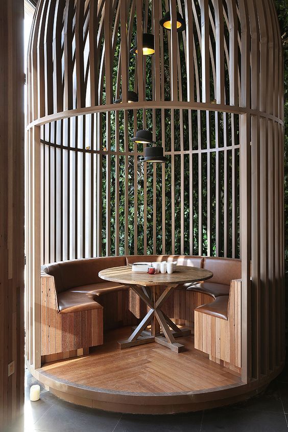 Gỗ óc chó bóng loáng, bàn đá cẩm thạch, Chân vàng đồng. Ghế da, Không gian sang trọng nhưng ấm cúng.