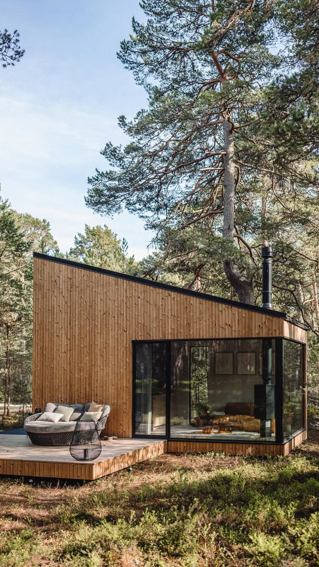 Gỗ, kim loại nhẹ, kính lớn để kết nối với thiên nhiên.