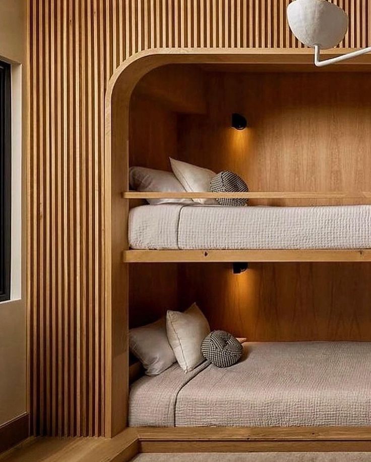 Mẫu tủ bếp làm từ gỗ sồi sáng phong cách Tây phương tối giản, hạn chế chi tiết tay nắm.