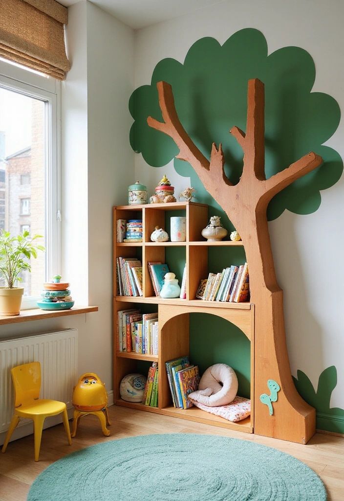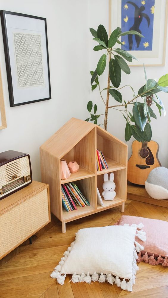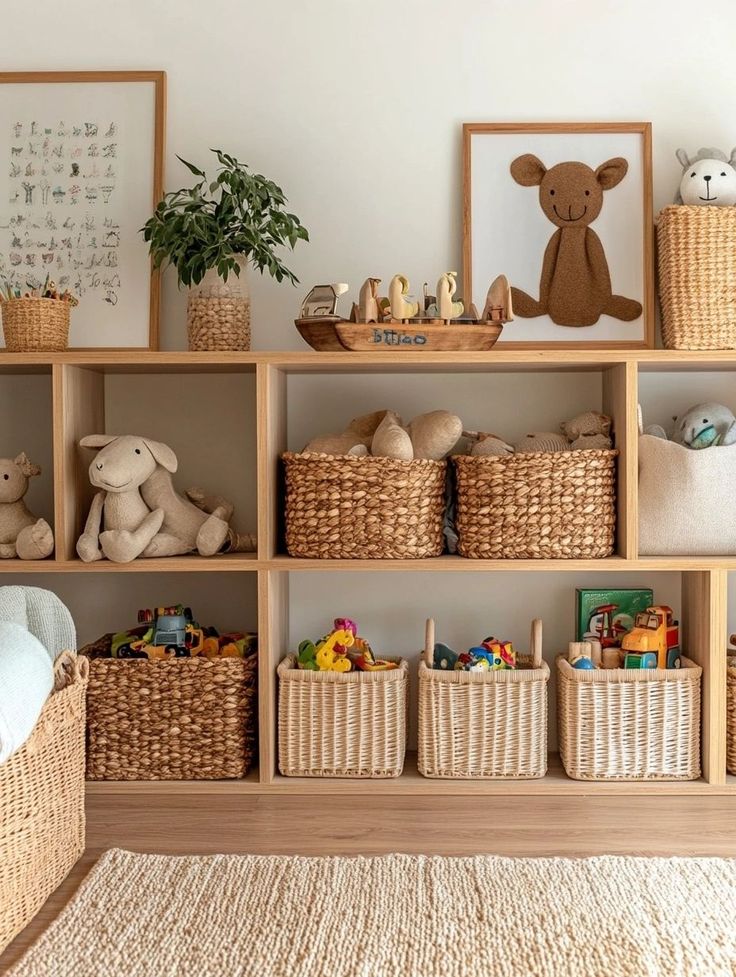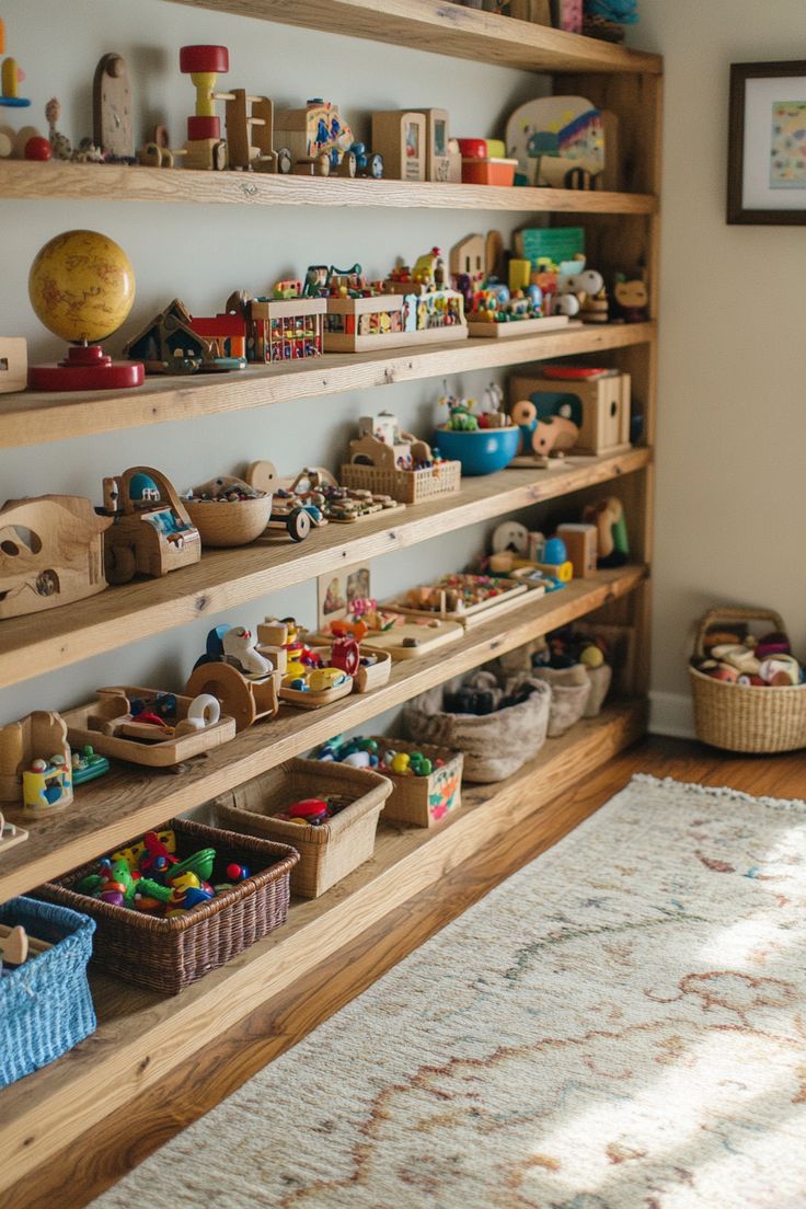 Để trưng bày những cuốn sách yêu thích, hoặc đồ chơi khuyến khích trẻ đọc sách và sắp xếp.