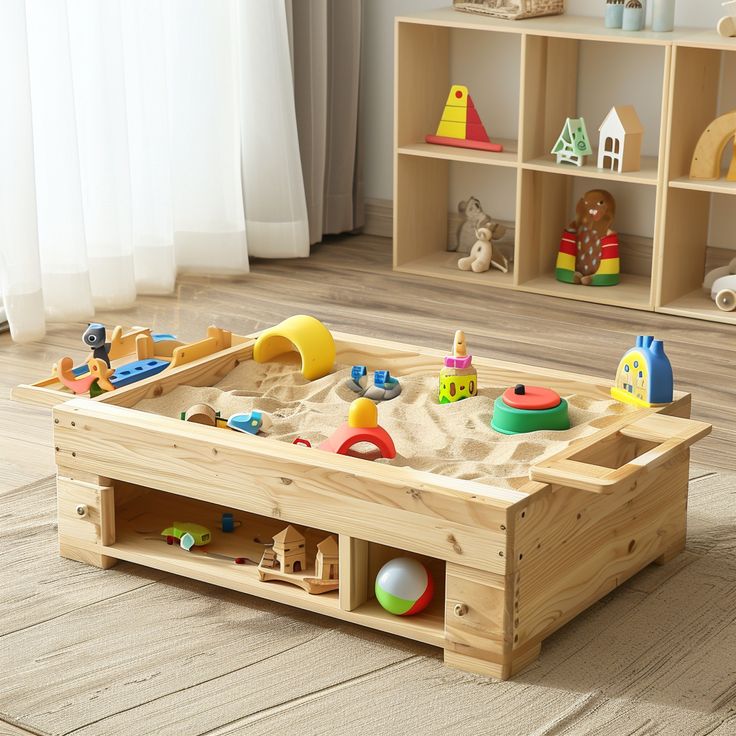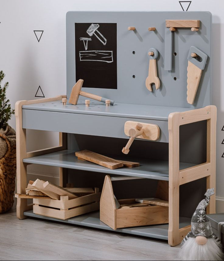 Kết hợp ngăn đựng đồ chơi, mặt bàn có thể sử dụng để bé có thể học hoặc chơi.