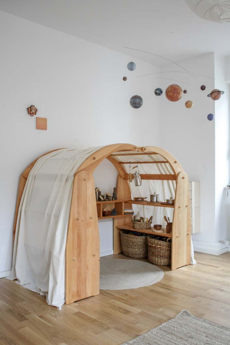 Gỗ chắc chắn, chịu lực tốt, chống trầy xước và có thể "sống sót" qua nhiều trò chơi nghịch ngợm của trẻ.