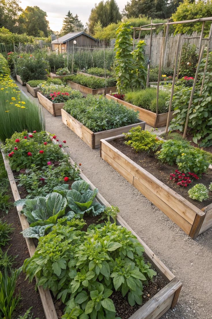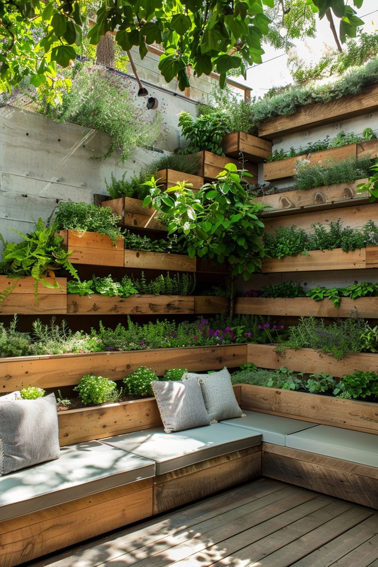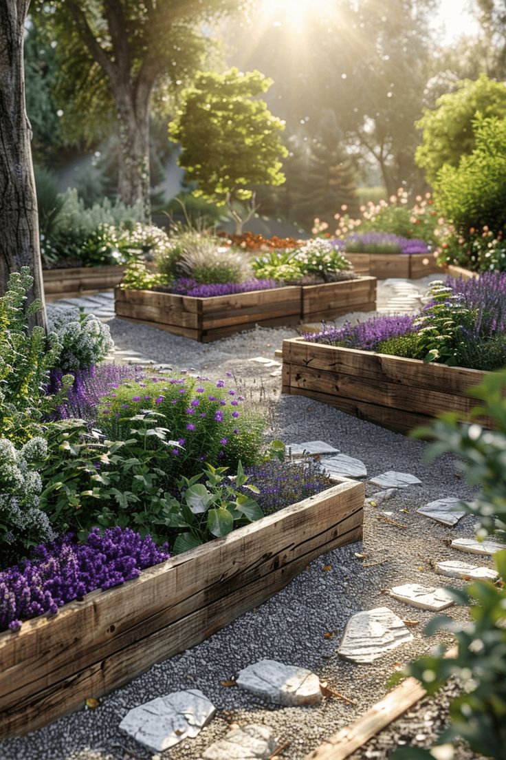 Thiết kế các ô vuông/khối chữ nhật bằng gỗ để trồng rau, rau thơm.