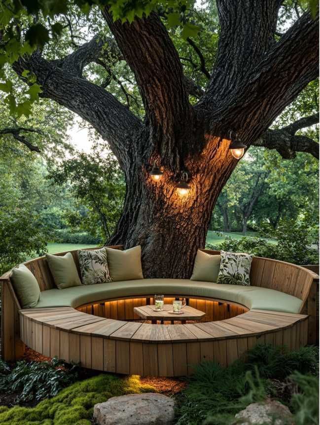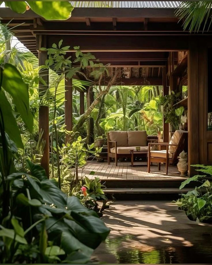 Gỗ mang lại sự ấm áp, mộc mạc và kết nối chặt chẽ với thiên nhiên, biến khu vườn thành một không gian nghỉ dưỡng thực sự.